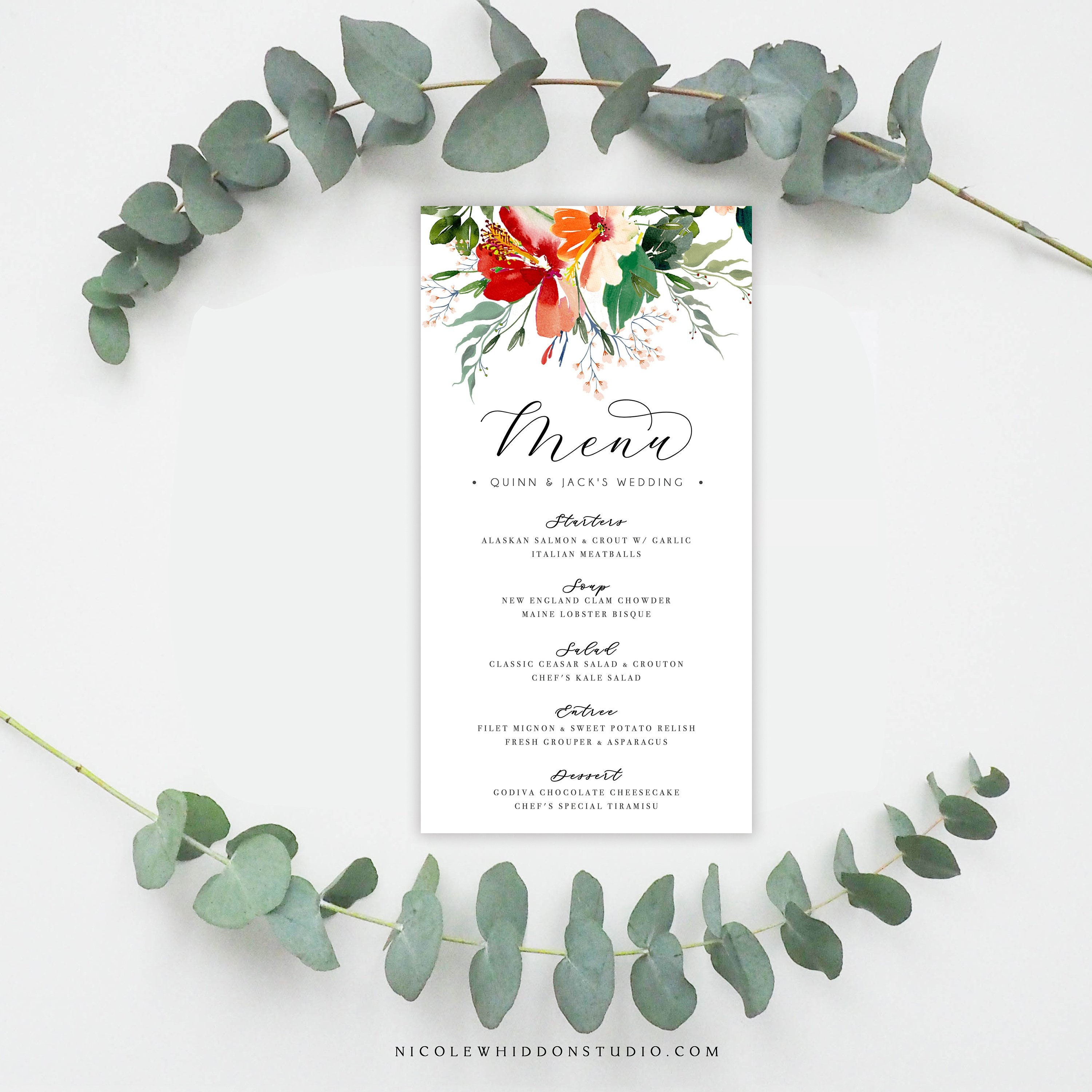 Instant Download Menu Bridal Shower Baby Shower Luau Menu
