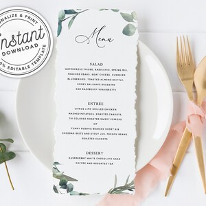 Watercolor Boho Greenery Menu W Eucalyptus Bridal Shower Etsy