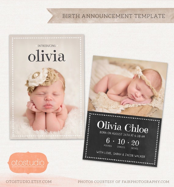 Birth Announcement Template Chalkboard Dots Cb027 For Photographers Psd Frame