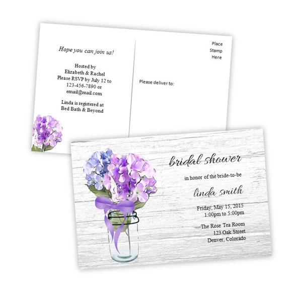 Bridal Shower Invitation Postcard Hydrangeas In A Mason Jar Diy Printable Template 4x6 Instant Download Microsoft Word Format