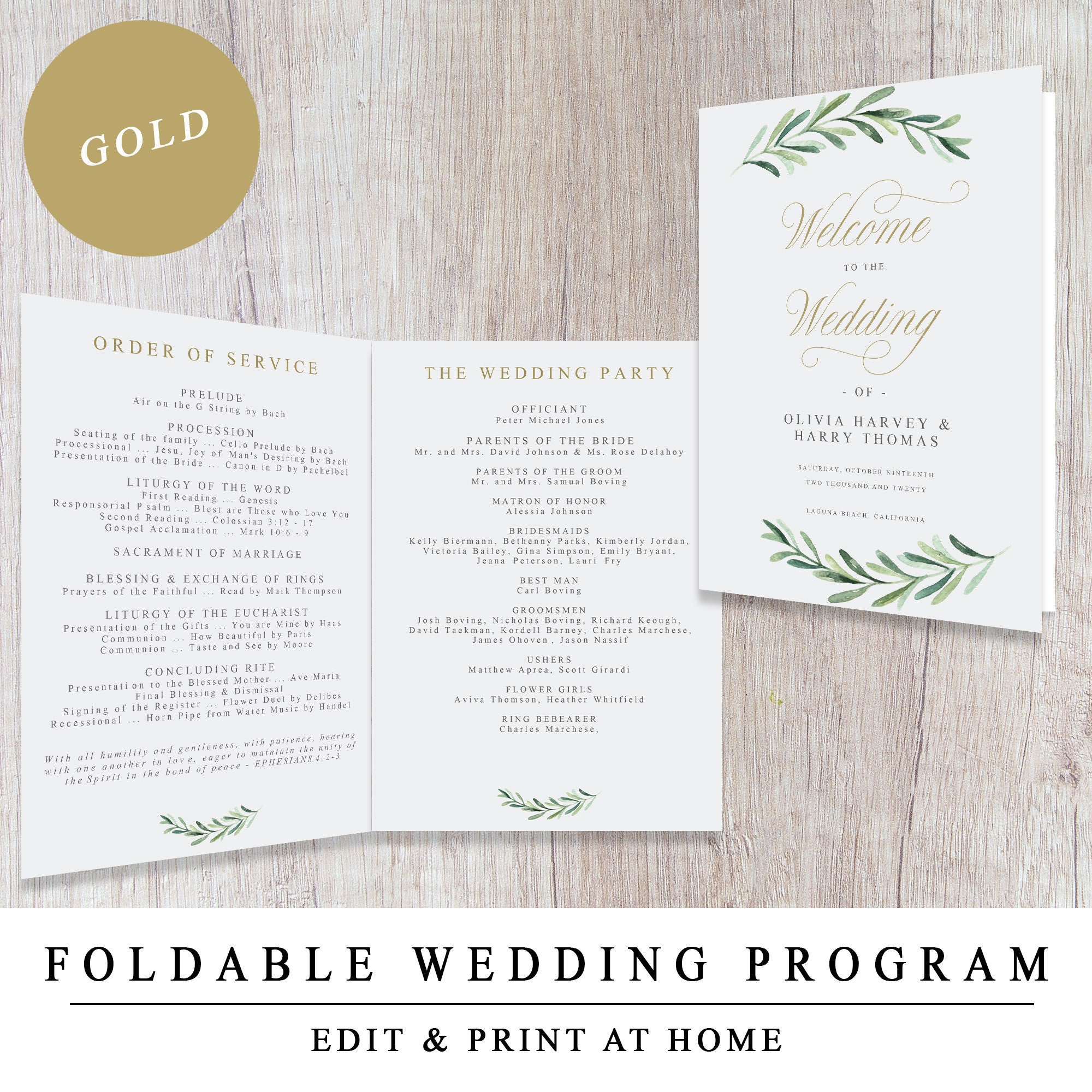 Greenery Wedding Program Booklet Amp Gold Calligraphy Printable Wedding Order Of Service Booklet Template Catholic Wedding Instant Download