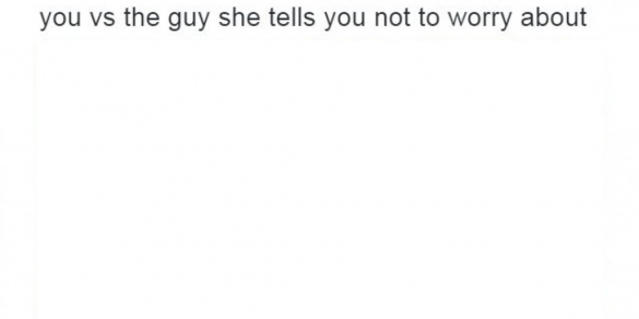 You vs the guy she tells you not to worry about template. Make a meme make a gif make a chart make a demotivational flip through images. The most confusing but compelling meme of our time. You vs the guy she tells you not to worry about tweets is the latest joke format to take twitter by form.