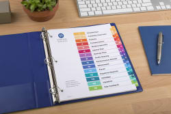 Getting big projects organized is as easy as a to z. And double sided hole reinforcement on tabbed dividers. Print your own custom section titles and images onto the table of contents sheet without worrying about labels or inserts.