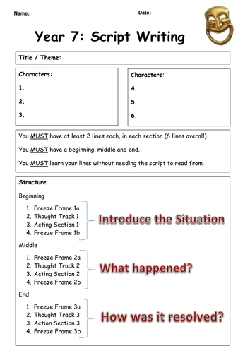 Ks3 Play Making Template Teaching Resources