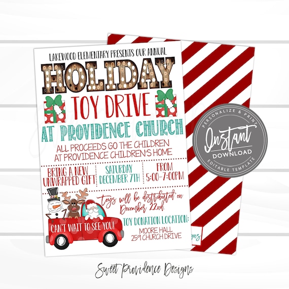 Christmas Toy Drive Flyer Holiday Pta Pto Flyer Christmas Fundraiser School Christmas Flyer Editable Christmas Flyer Instant Download