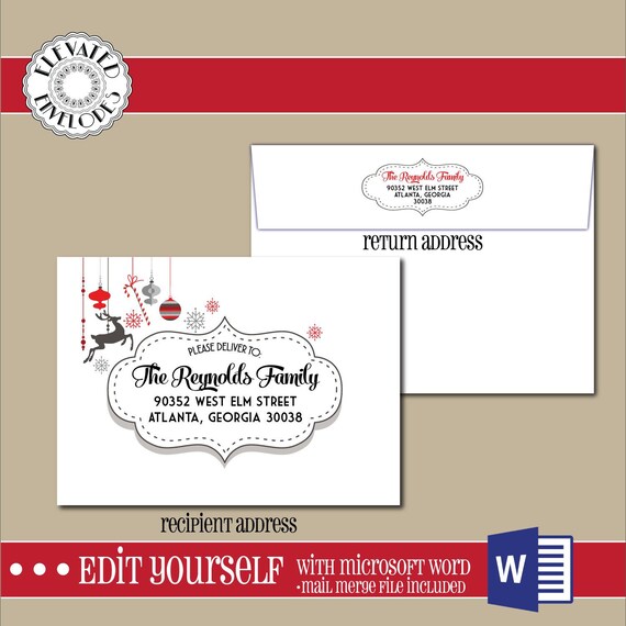 Editable Christmas Envelope Template Christmas Envelope Addressing Christmas Word Mail Merge Instant Download Return Address Template