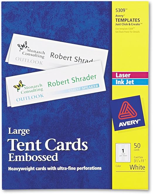 Avery 5309 Large Embossed Tent Card White 3 1 2 X 11 50 Cards Box