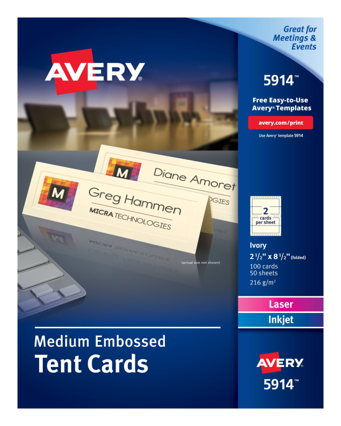 Our free template software avery design print makes it even easier to design and print your table tent cards. Avery large embossed tent cards 5915 template. Avery white place cards 40017 template add an elegant touch to conferences weddings galas and more with high quality place cards you can print using your laser or inkjet printer.