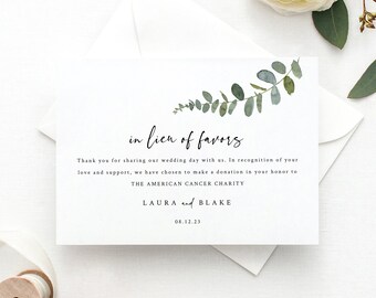 Donation Card Favor Template In Lieu Of Favors Beloved Hearts Editable Pdf