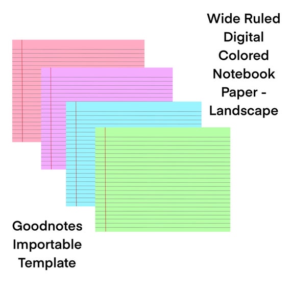Wide Ruled Digital Colored Notebook Paper Landscape