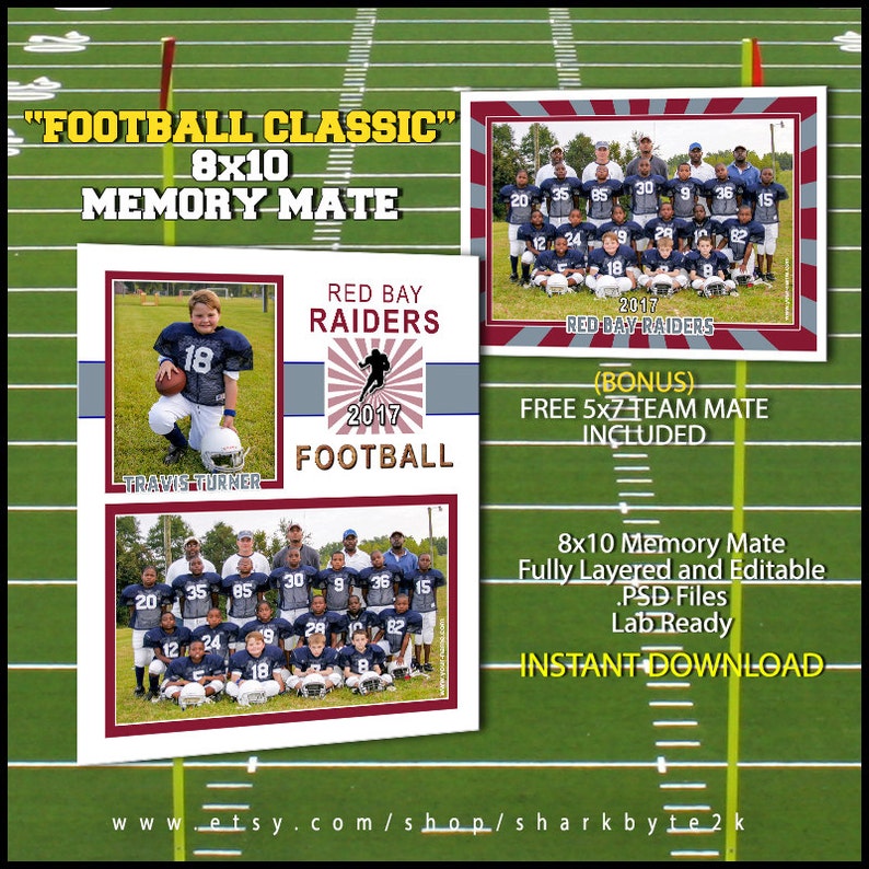 Football Mm11 8x10 Memory Mate Template Sports Photo Template Digital File