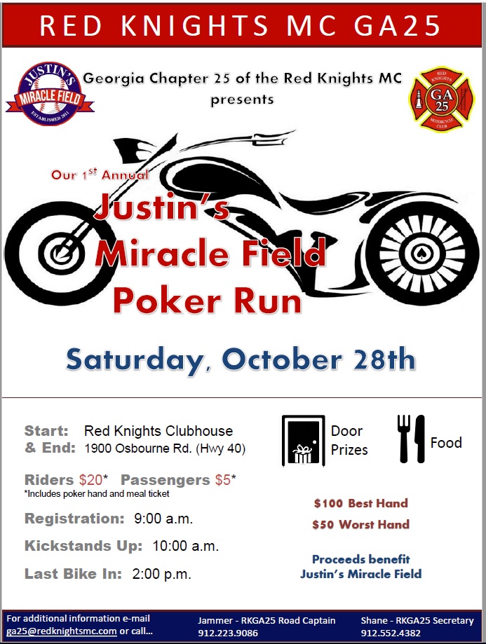 Poker Run To Benefit Justin S Miracle Field On 10 28