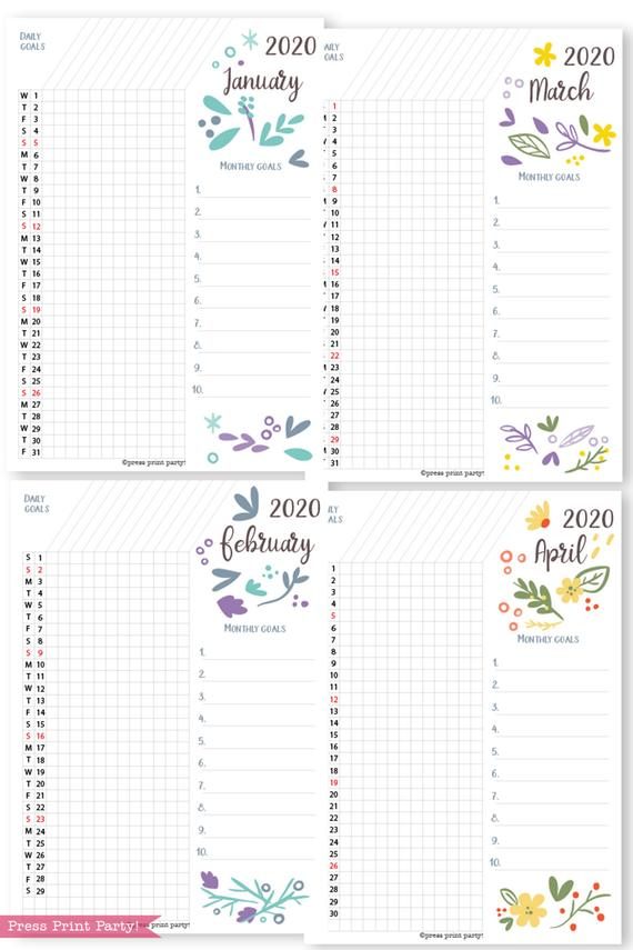 2020 Printable Calendar Template Set Whimsy