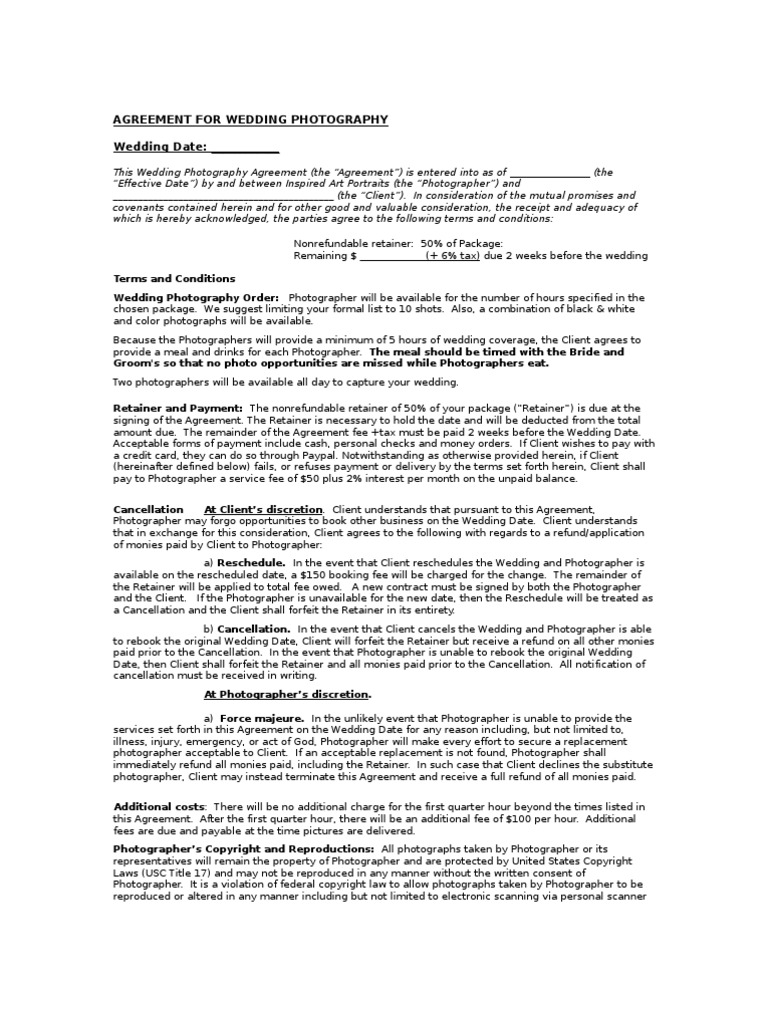 The contracts mentioned below can be easily downloaded and edited as per the needs of the couple. The couple agrees to retain the officiant for amountthis includes a number hour ceremony on date at time and a number hour rehearsal at the venue on date at time. Ceremony agreement this contract for wedding officiant services the contract is made between david r.