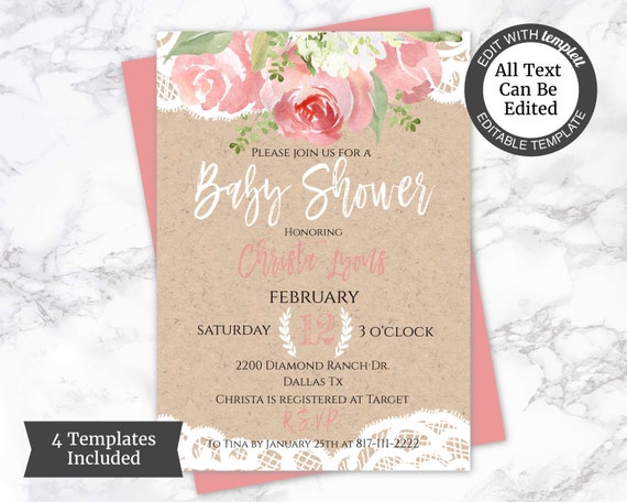 Floral Baby Shower Invitation Template Pink Baby Shower Invite Girl Baby Shower Invitation Floral Shower Invite