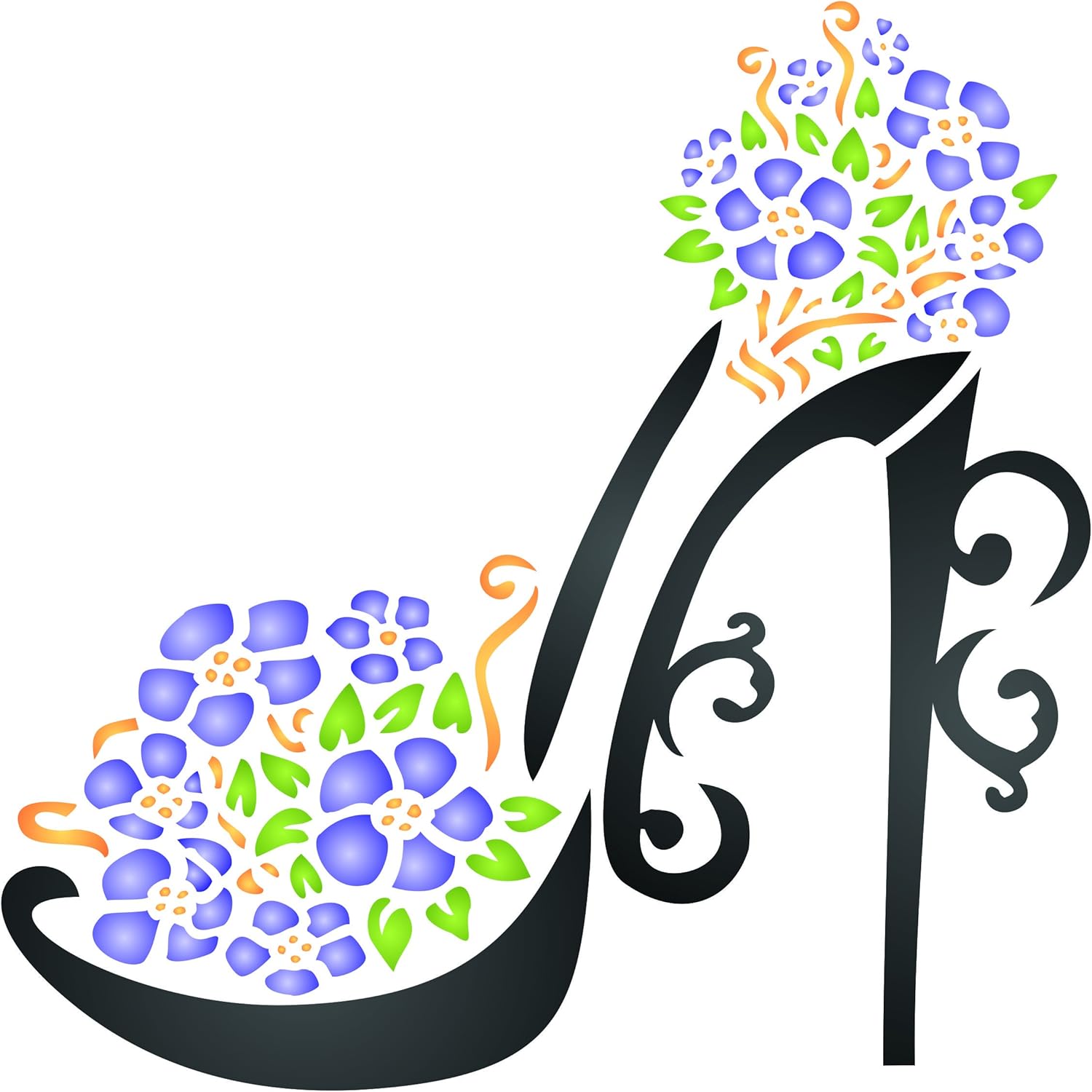 High Heel Shoe Stencil 6 5 X 6 5 Inch M Decorative Flower Stiletto Platform Shoes Stencils For Painting Template