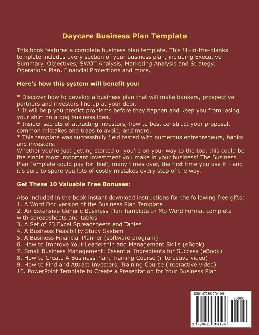 It contains the same templates and information you see here but with additional guidance to help you develop the perfect plan. Daycare business plan allows to forecast expenses and revenue to make financial analysis and know when your entering a market should be more. Easily editable printable.