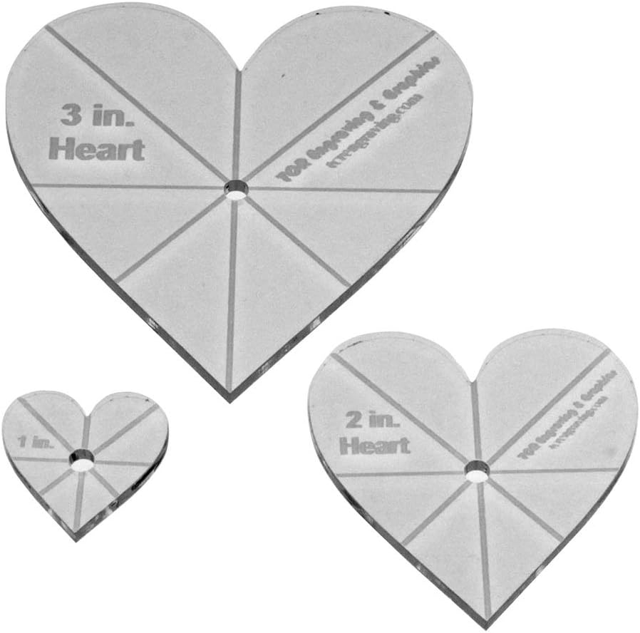 Heart Template 3 Piece Set 1 Inch 2 Inch 3 Inch Clear 1 8 Inch Thick W Guidelines