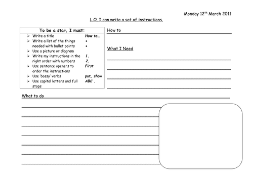 Include warnings as pre steps. Work instructions template ms word this work instruction template pack includes 3 microsoft word templates that you can easily. Once youve downloaded our instructions writing worksheets youll have access to 3 different templates to assist your ks1 or ks2 class write their very own set on instructionsnbspthe first template includes a blank box for the title a you will need box and a firstly secondly and thirdly boxthe second template features a blank box for the title a you will need box and numbered.