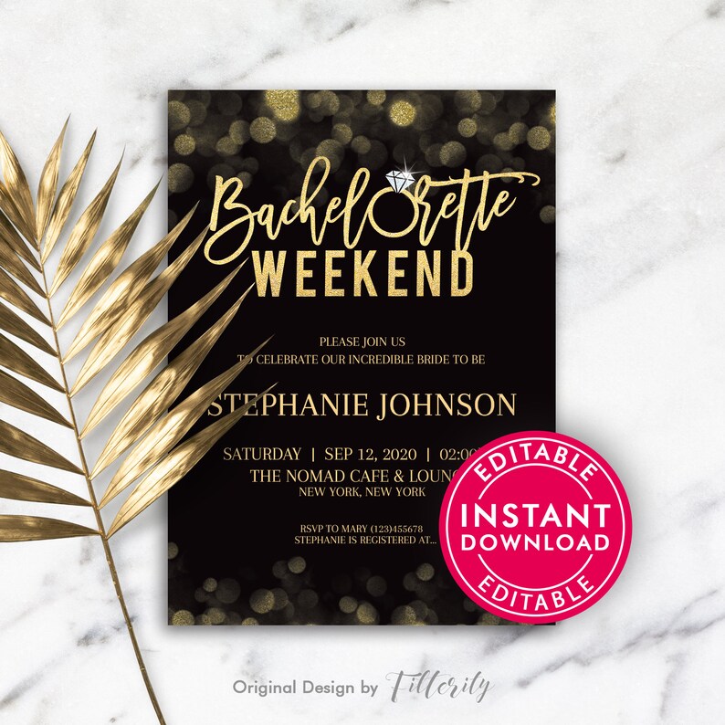 Bachelorette Party Invitations Bachelorette Invite Bachelorette Party Invites Gold Bachelorette Weekend Printable Invitation Template
