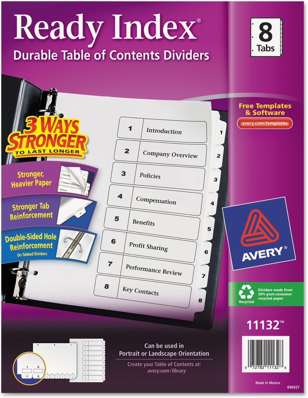 Avery 11132 Ready Index Toc Dividers Tabs 1 8 Letter Size White 8 Tabs St
