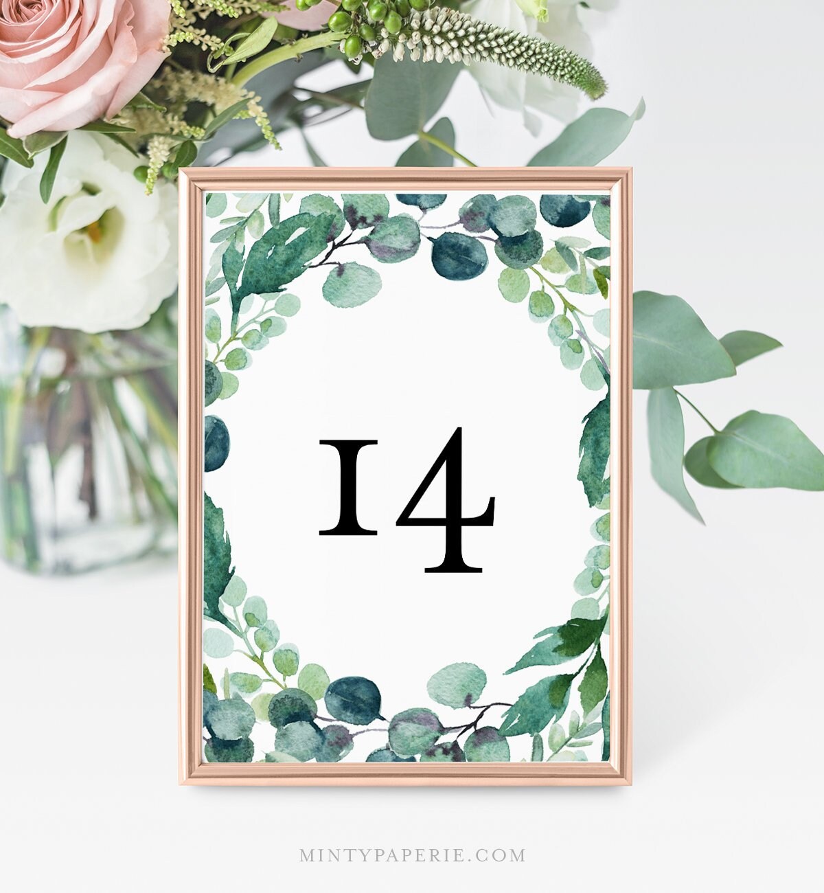 Greenery Wedding Table Numbers 1 50 Table Number Cards Wedding Table Numbers 4x6 And 5x7 Printable Instant Download Gfg100