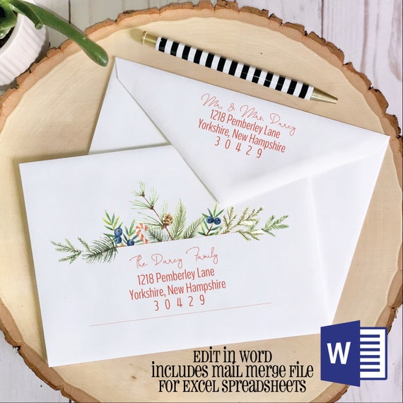 Editable Christmas Envelope Template A7 Envelope Envelope Addressing Christmas Word Mail Merge Excel Spreadsheet Return Address Template