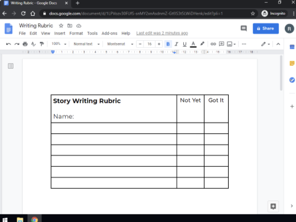 Create A Writing Rubric With Google Docs