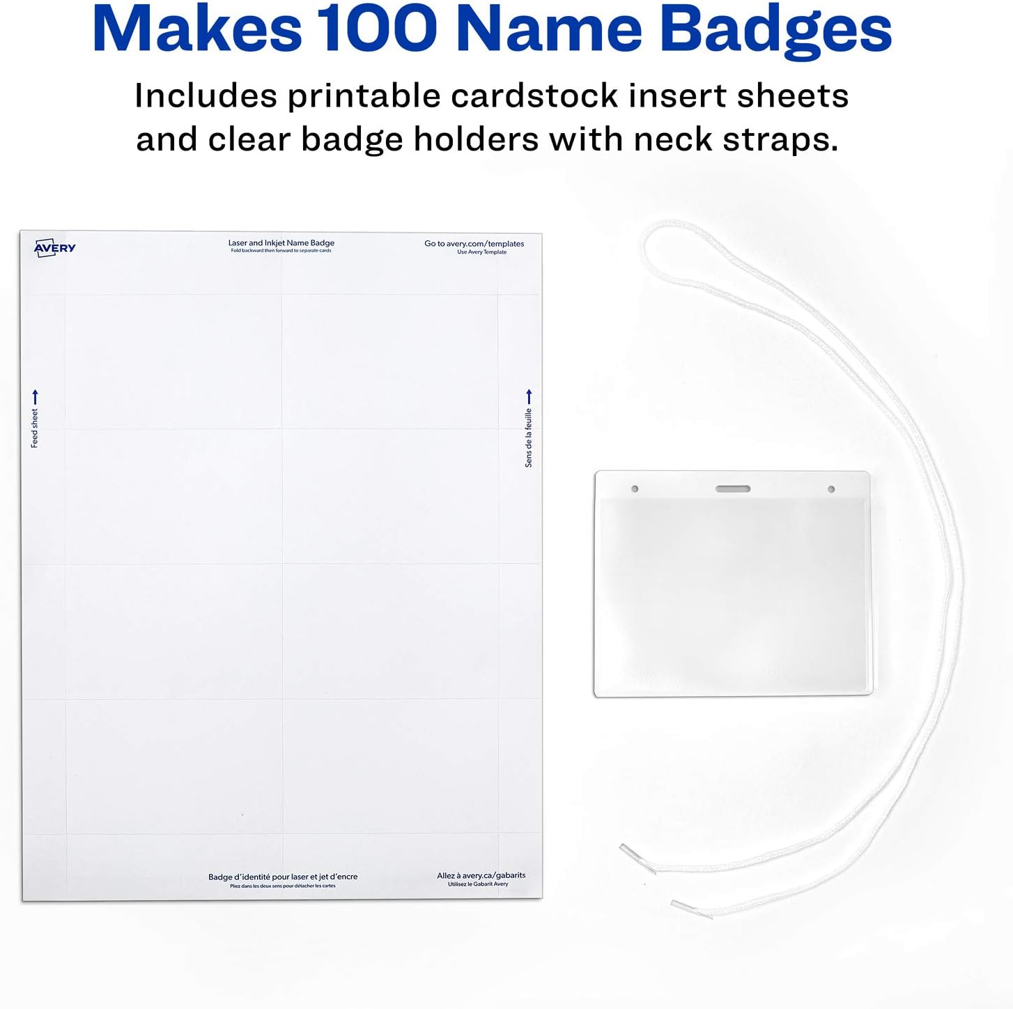 Avery Name Badges With Lanyards Print Or Write 3 X 4 Badge Holders Amp Lanyards 100 Inserts 74459