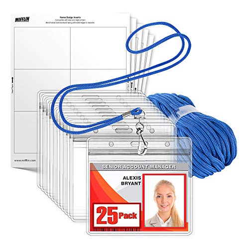 Mifflin Lanyard With Horizontal Id Name Badge Holder Paper Inserts 3 Piece Kit Blue Clear 3x4 Inch Card Holder 25 Pack