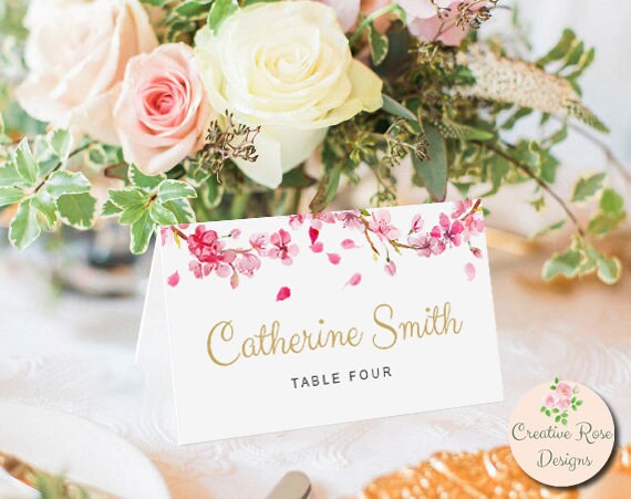 Printable Place Cards Escort Cards Instant Download Pink Cherry Blossom Wedding Printable Template Edit In Word Or Pages