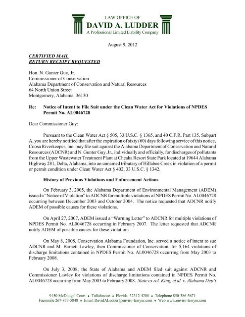 Coosa Riverkeeper Serves Notice Of Intent To Sue Alabama