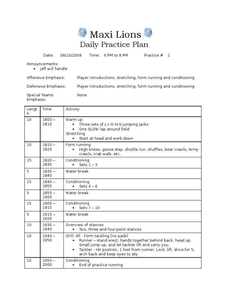 Football Practice Plan Template Excel