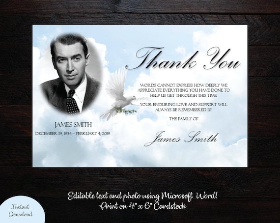 Funeral Photo Thank You Card Template Blue Clouds And Dove Memorial Thank You Card Printable