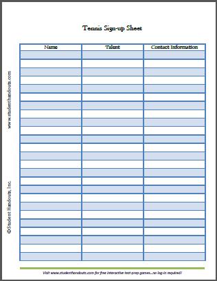 Free Printable Tennis Sign Up Sheet For School Teams