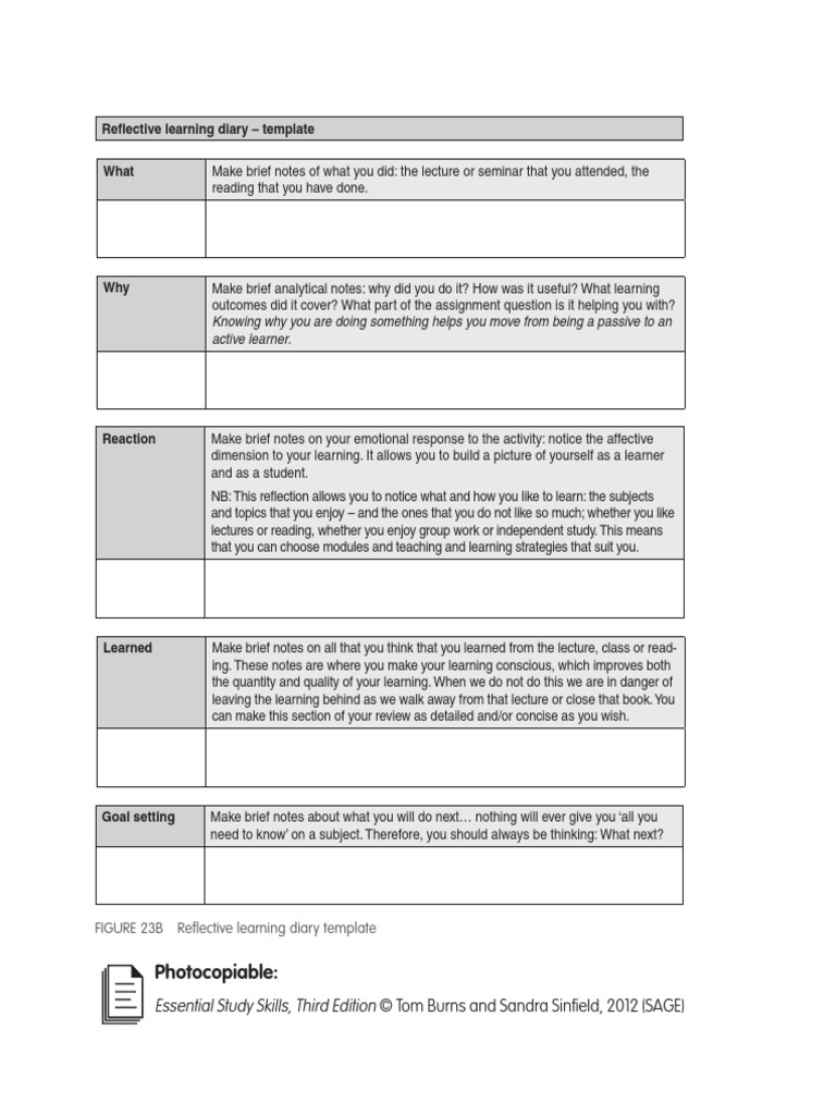 Reflective Learning Diary Template Lecture Study Skills