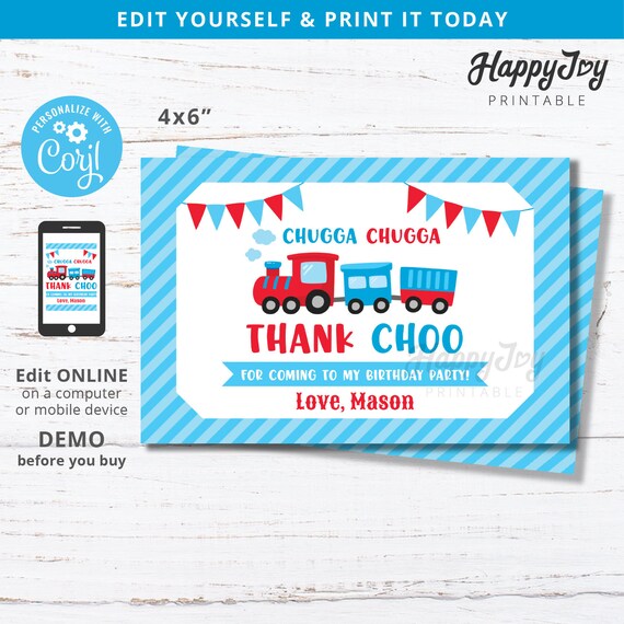 Thank Choo Train Party Thank You Note Card 4x6 Chugga Two