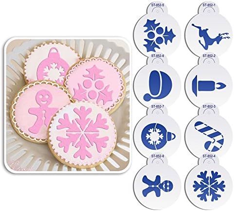 Art Kitchenware 8pcs Christmas Cookie Stencil Set Icing Royal Stencil Tool Deer Candle Snowflake Hat Crutch Stencils For Cake Beige Semi Transparent