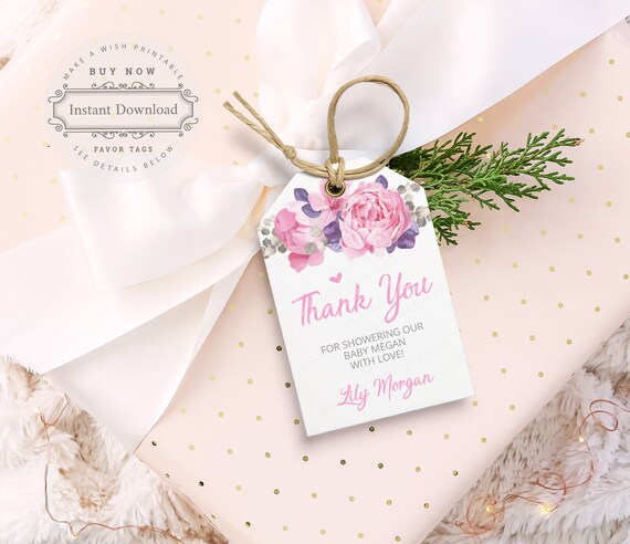 Editable Thank You Tags Baby Shower Purple Floral Baby