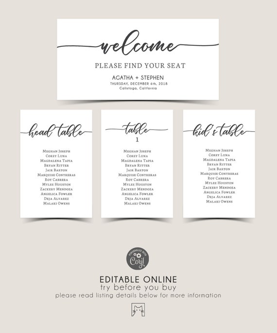 Self Editing Seating Chart Template Printable Wedding