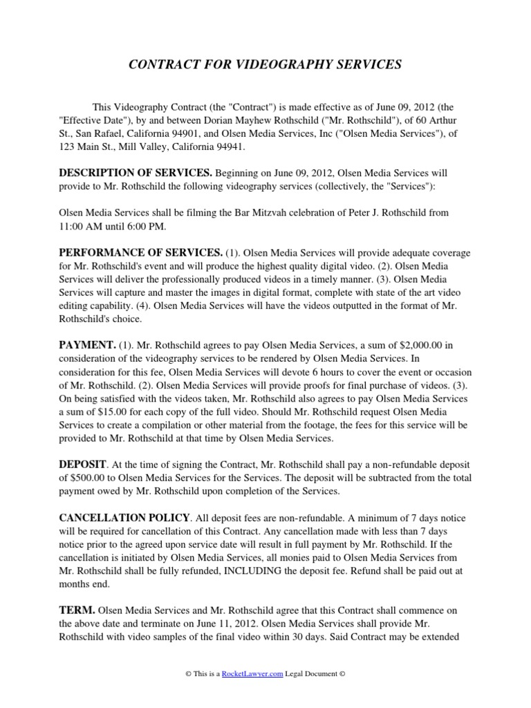 14 Printable Videography Contract Pdf Forms And Templates