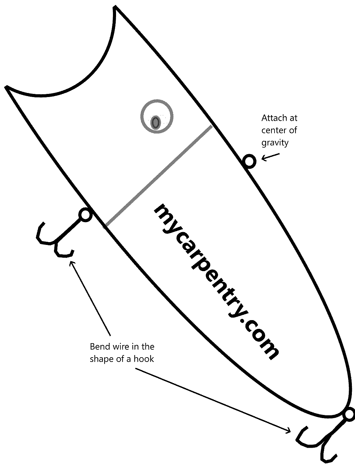 Template lightened balancer jigger 90mm. If you are using 12mm x 100mm meranti draw a line across the timber at 14cm intervals. Wooden lures have two or more sets of trebles swinging from them.