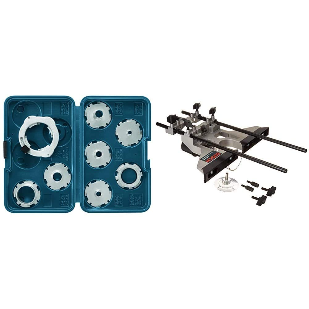 Bosch 8 Piece Router Template Guide Set Ra1128 With Bosch Deluxe Router Edge Guide With Dust Extraction Hood Amp Vacuum Hose Adapter Ra1054