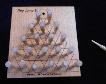 The easiest way to lay out the pattern is by lightly penciling a smaller triangle 12 inch inside the edges. Jump one peg at a time and remove the jumped peg. The goal is to jump pegs one at a time removing the jumped peg until only one peg remains.