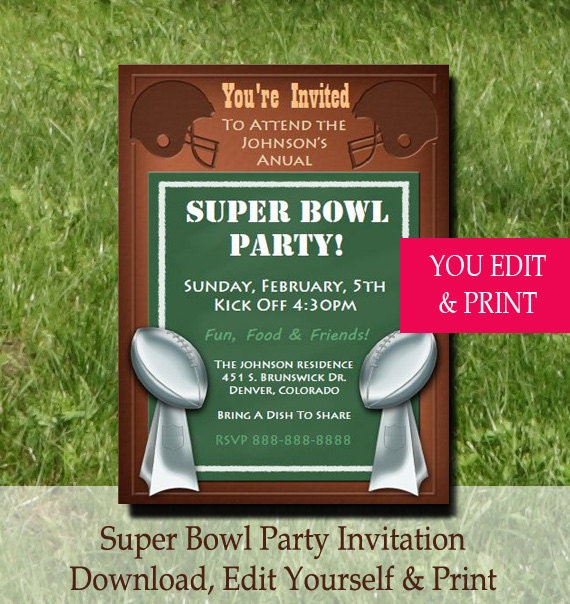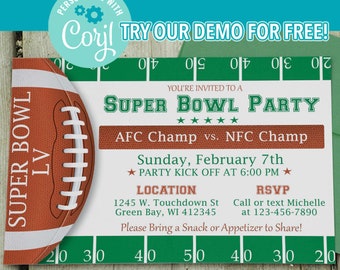 Super Bowl Party Invitation Super Bowl Invitation Football Party Invitation Football Invitation Game Day Party Invitation Edit Yourself
