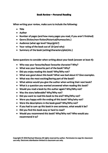 Additionally the book review template allows the teacher to check a students comprehension of a certain text to assess and inform.