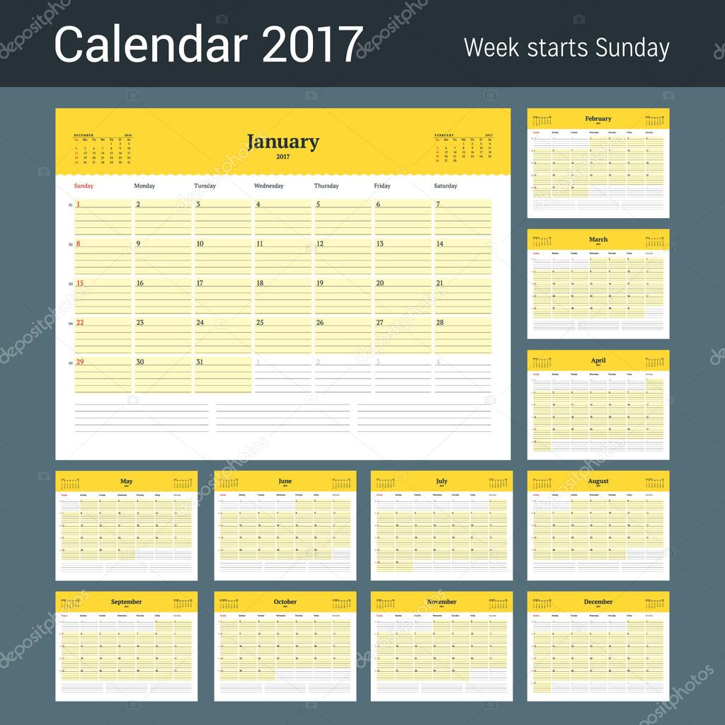 Calendar Template For 2017 Year Set Of 12 Months Business