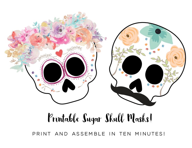 Sugar Skull Printables Set Of 2 Dia De Los Muertos Masks