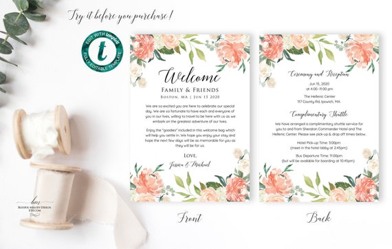 Wedding Welcome Letter Template Welcome Letter Printable Editable Template Welcome Bag Letter Welcome Note Wedding Itinerary 50