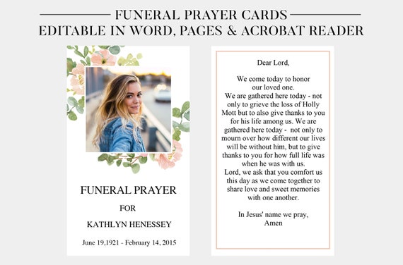Funeral Prayer Cards Printable Funeral Cards Memorial Cards Funeral Religious Cards Memorial Prayer Card Template Word Pages Pdf
